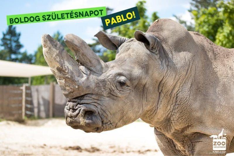 Mint írták, Pablo 1977-ben született az amerikai San Diegó-i Állatkertben, amely a világ egyik legismertebb és legsikeresebb orrszarvú-tenyésztési programját működteti. Innen egészen fiatalon a Gänserndorfi Szafariparkba került, ahol hamar az ottani közönség kedvencévé vált. Tizennyolc éve, 2007-ben érkezett Veszprémbe, az Afrika-szavanna kifutóba, ahol azóta a Veszprémi Állatkert oszlopos tagja – írták.