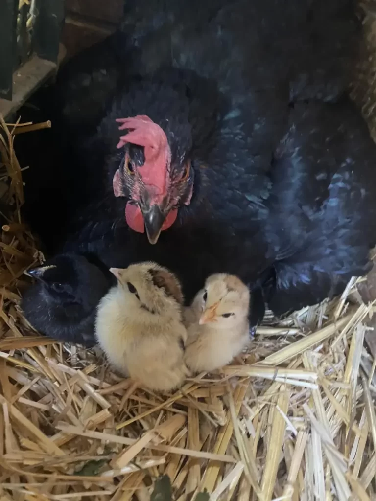 8 apró csibével lepte meg gondozóit a Tollas Barát által mentett fekete kotlós! A „Fekete Rettenet” nevű tyúkot egy ipartelepről mentette az Alapítvány és teljesen váratlanul most 8 pihe-puha csibét költött ki!