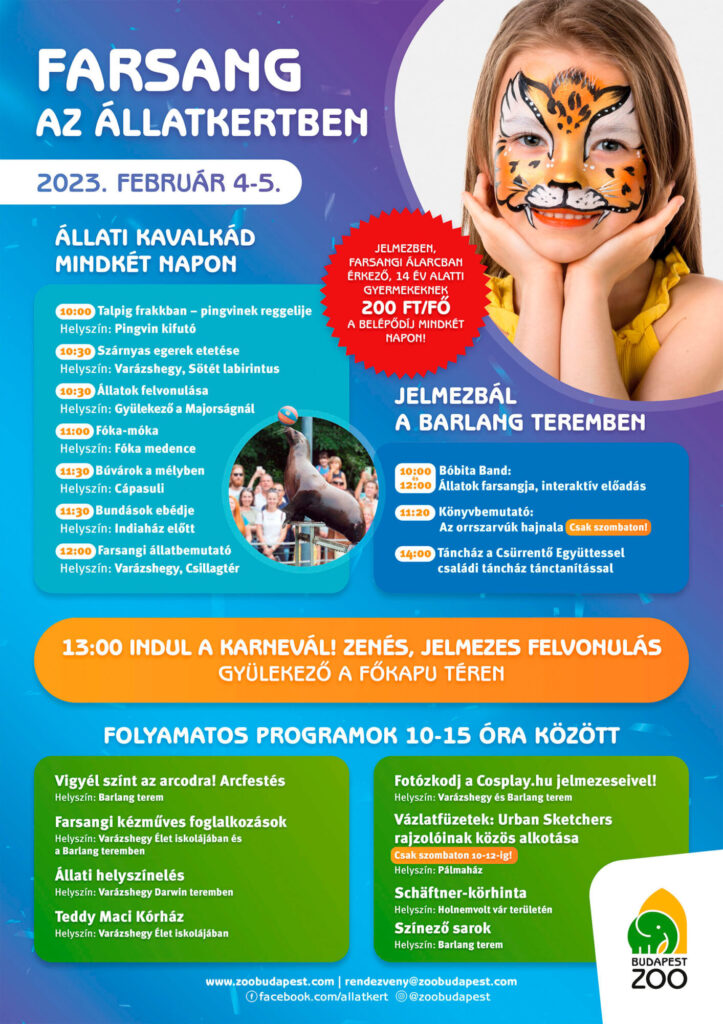 A részletes farsangi programkínálat az Állatkert honlapján is olvasható, de mi is mutatjuk: