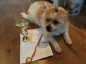 -Wendy, az örökbefogadott kutyánk kölyökkorától (2016 óta) van velünk. Teljes mértékben családtag, szobakutya, több keverék szépségversenyen is indultunk vele.