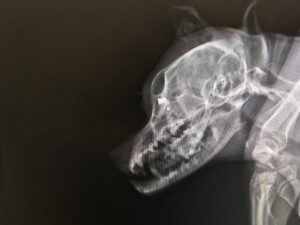 Utána rohanás az állatorvoshoz, a röntgenen egyből ott volt a bizonyíték is: a jobb szemgolyó mögött egy légpuska lövedék. Az állat szemét átlőve állt meg benne. Sajnos a jobb szemét el kellett távolítani. A rendőrségi feljelentés megtörtént, majd a szomszédnál házkutatás a fegyver után (mely sosem lett meg), nálam pedig a kamera felvétel lefoglalása.