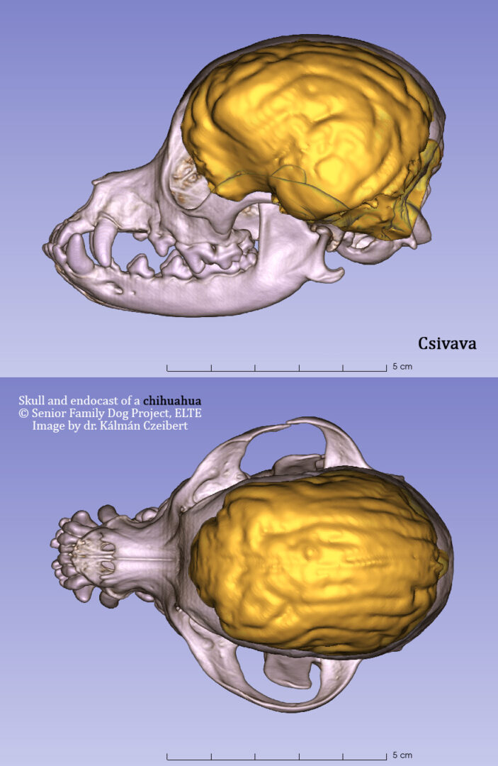 A komputertomográfiás képalkotás azt is jól láthatóvá teszi, hogyan változott meg a kutyafajták agya a mesterséges szelekció hatására. Az ELTE TTK Anatómiai, Sejt- és Fejlődésbiológiai Tanszék kutatójának, dr. Csörgő Tibornak a gyűjteménye közel 400 kutyakoponyát tartalmaz 152 fajtából, ezek közül 28-at vizsgáltak meg alaposabban a Frontiers in Veterinary Science-ben októberben megjelent tanulmányukban a kutatók.