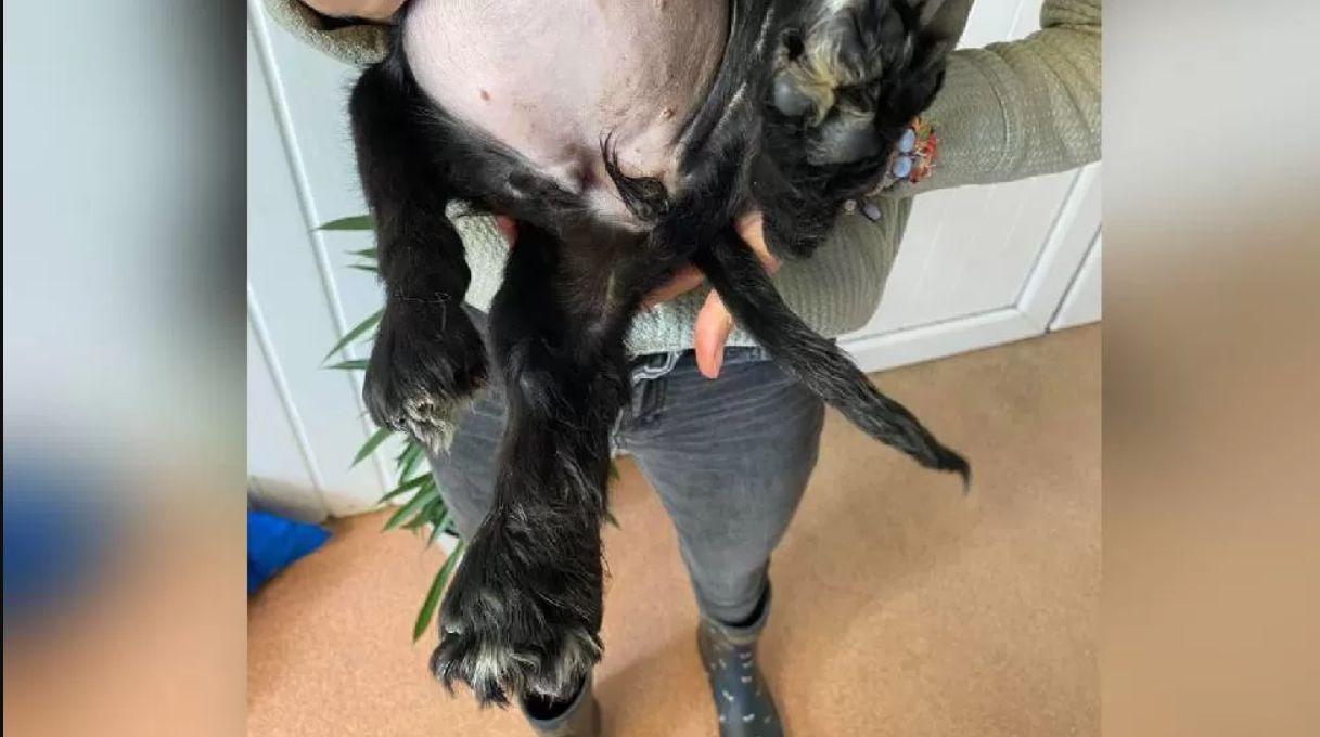 Egy tizenegy hetes nőstény spánielt hagytak B&M pembrokeshire-i szupermarket előtt a múlt héten. A kutyus hat lábbal született, hátsó végtagjaiból van plusz egy pár. Az Ariel nevet kapta.