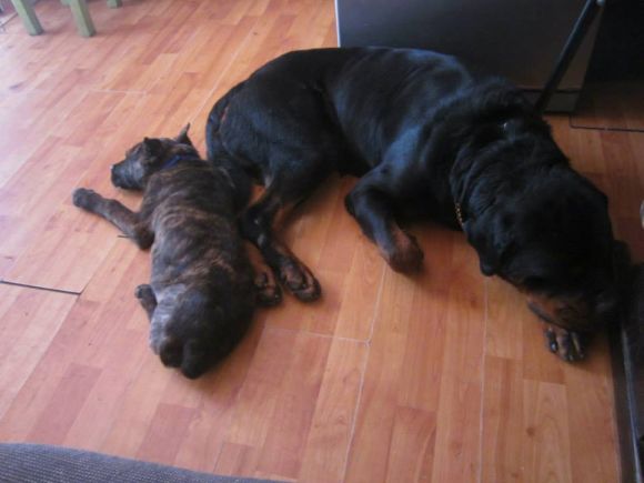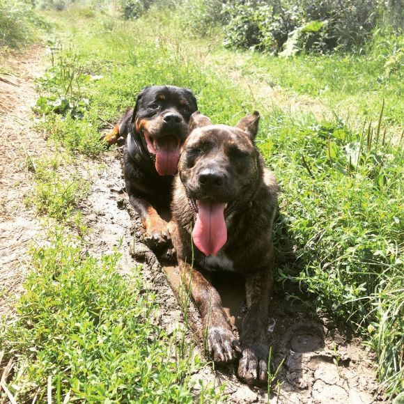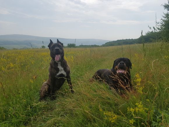 Imola: Nem hamar, elég sok idő kellett hozzá. Maga a fajta is ilyen, kemény magatartású kutyák a rotweilerek, de a végén elfogadott, elfogadta, hogy mi egyek vagyunk, egy falka. Utána jött Limpy, a háromlábú kutyánk, őt szintén elfogadta egy idő után, és együtt alkottunk egy falkát, egy családot.