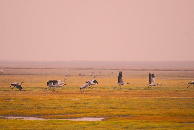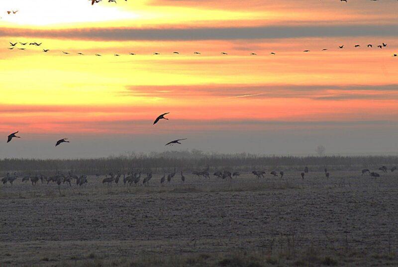 Hatalmas csapatokban gyülekeznek a darvak a Kardoskúti Fehér-tó körül. Bár a darvak vonuló madarak, enyébb teleken egyre többen telelnek át a nemzeti parkunkban.
