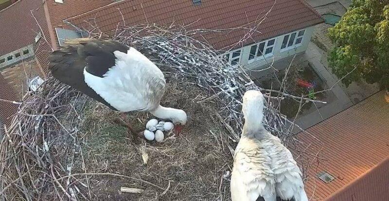 A fészekben összesen négy tojás lapult, ami már önmagában is nagy öröm volt, különösen annak fényében, hogy a több évtizedes régi fészek a tél viszontagságai miatt gyakorlatilag megsemmisült. A szakemberek által épített új, biztonságos fészek azonban nemcsak a gólyapár tetszését nyerte el, hanem a zord időjárás próbáját is kiállta. Külön köszönet illeti Márton Vlad Andrást és Hajdú Tamást a szakszerű fészeképítésben nyújtott segítségükért, valamint mindazokat, akik bármilyen formában hozzájárultak ahhoz, hogy a madarak ilyen biztos otthont kaphassanak