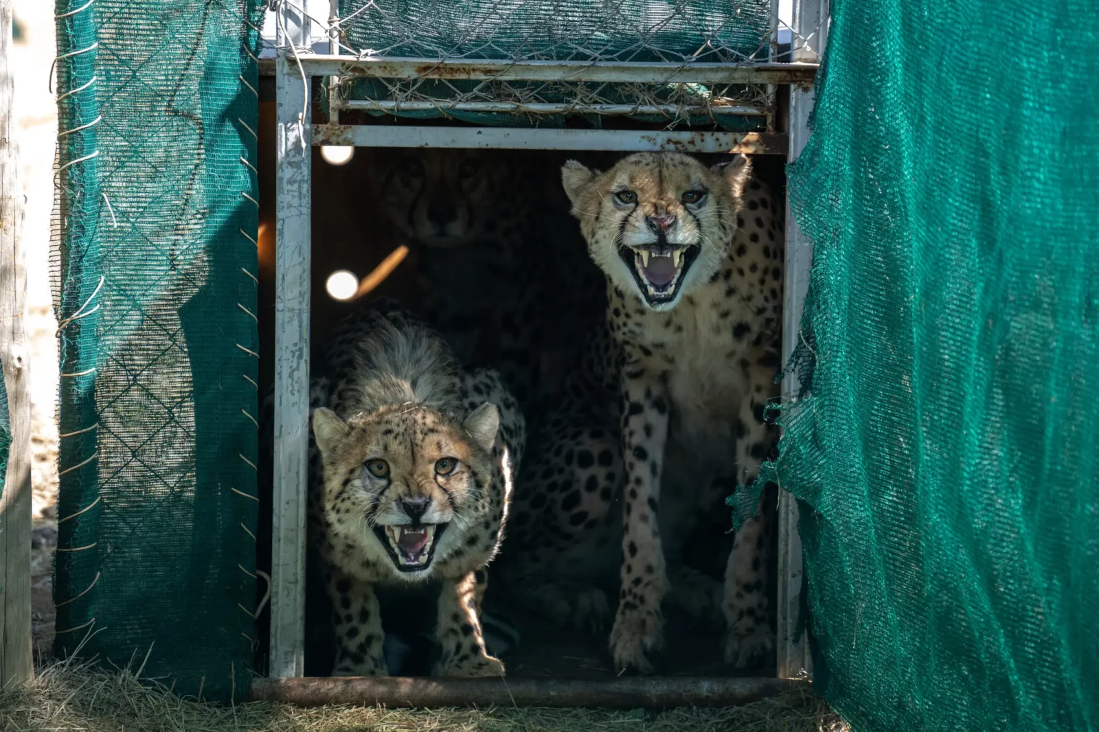 Ez volt az első alkalom, hogy nagyragadozókat szállítottak egyik kontinensről a másikra azért, hogy újra betelepítsék őket a vadonba. A nyolc állatot – öt nőstényt és három hímet – vad szakértők, állatorvosok és három biológus kísérte a namíbiai Windhoekból az indiai Gwalior városába. Az állatokat a transzkontinentális utazásuk során egy számukra kialakított Boeing 747-es utasszállító repülőgéppel szállították. Gwaliorból tovább már helikopterrel érkeztek a Madhya Pradesh állambeli Kuno Nemzeti Parkba, ahol a miniszterelnök vezette delegáció szabadon engedte őket. Az állatokat egy hónapig karanténban tartották, mielőtt szélnek eresztették őket.