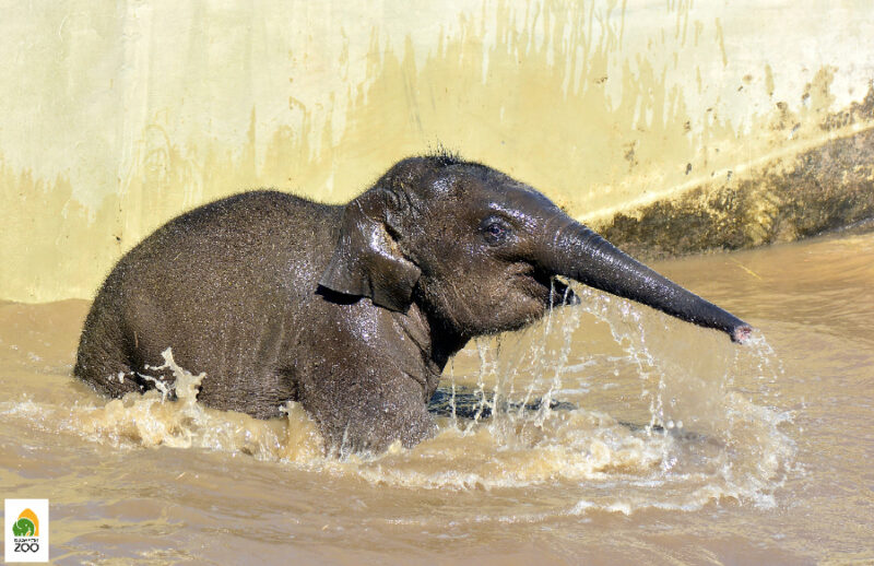 A fővárosi intézmény egyik legnépszerűbb lakója továbbra is Samu, a tavaly áprilisban született kiselefánt. Mivel Samu nagyon szereti a lubickolást, a hét eleji kedvező időjárását kihasználva, az állatkert dolgozói töltöttek némi vizet a szabadtéri kifutóhoz tartozó medencébe.