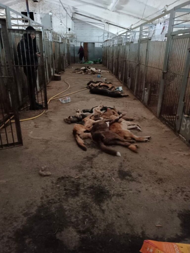 A menhelyen magára maradt 485 kutyából csak 150 volt még életben, amikor az önkéntesek be tudtak jutni a menhelyre. A látvány ami eléjük tárult, sokkoló volt.