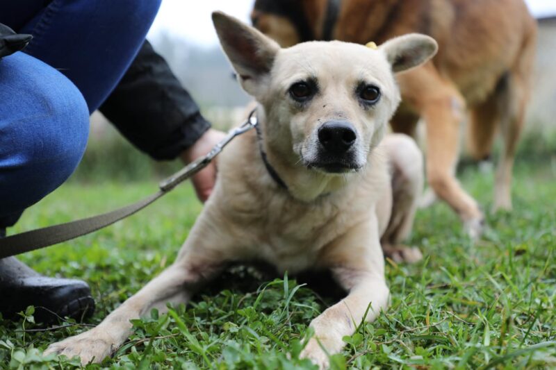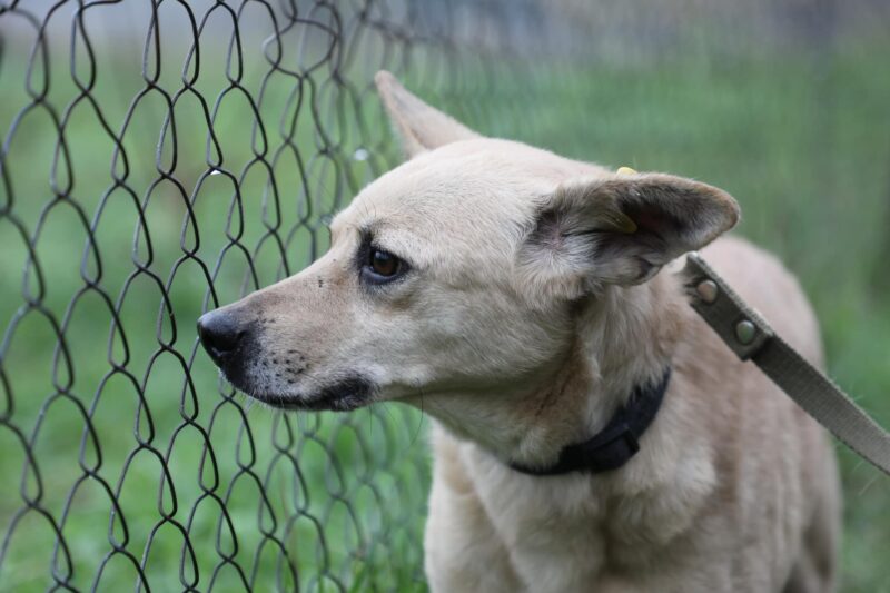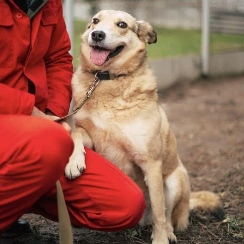 Dobby sosem volt teljesen boldog eddig. Egész életét egy ukrajnai állatmenhelyen töltötte, és a többi kutya a bezárt helyen folyton terrorizálta. A stressz miatt állandó bőrbetegségektől szenvedett. Aztán jött a háború is, és a Borodyanka állatmenhely 5 hétig víz és élelem nélkül maradt ő is. Persze, hogy nyomot hagyott benne az esemény.