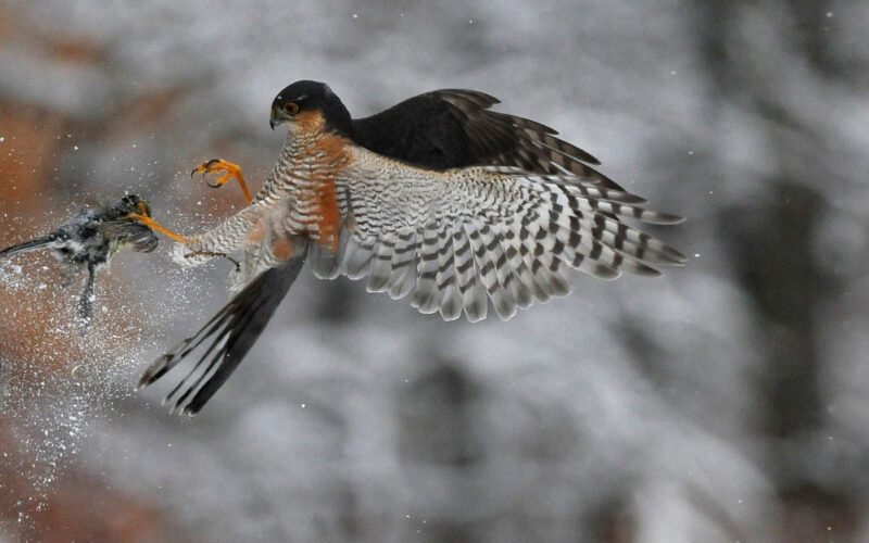 A madáretetőknél rendszeresen felbukkanhat egy-egy karvaly, hogy zsákmányt szerezzen magának, de ez természetes, hiszen e táplálékban szűk időszakban nekik is enniük kell valamit.