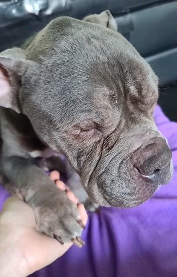 Liam súlya mindössze 8 kg volt, ami egy bulldog-keveréknek rettentően kevés. Apránként táplálták, szervezetét infúzióval támogatták, és szép lassan elkezdte visszanyerni erejét.