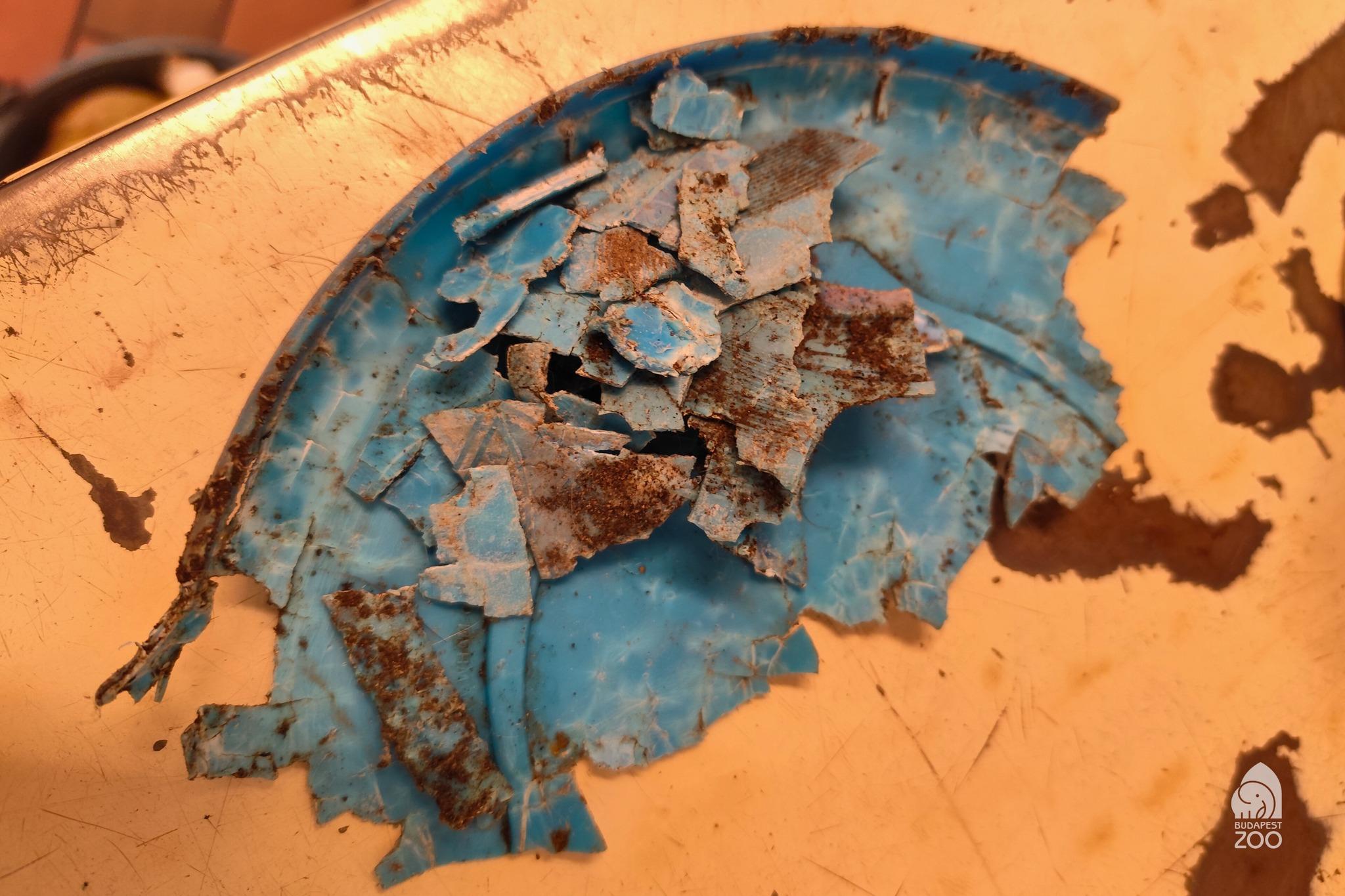 Ismét egy kutyajáték – vélhetően frizbi – maradványait találták meg a Fővárosi Állatkert gondozói a minap a reggeli vizit közben. Az állatok már darabokra szedték a műanyag eszközt, így vélhetően nyeltek is belőle, ami akár halálos is lehet számukra – írja közösségi oldalán az intézmény.