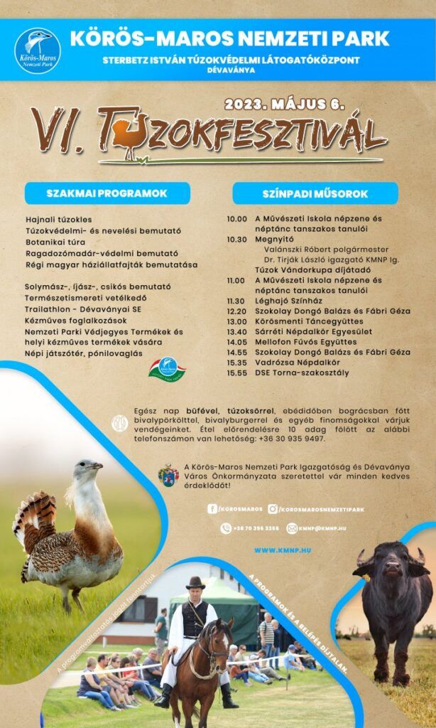 Május 6-án, szombaton, Dévaványán, a Sterbetz István Túzokvédelmi Látogatóközpontban rendezik meg a VI. Túzokfesztivált.