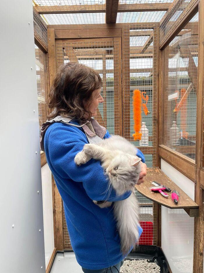 „Folyamatosan kaptunk olyan idős macskákat, amelyeket nehéz volt örökbe adni, mert valami bajuk volt, vagy mert idősek voltak, és senki sem akarta őket. Túl sokáig voltak egy ketrecben, és Marion szeretett volna nekik egy külön helyet létrehozni. Így született meg a Moggie’s Mansion” – magyarázta Susie Phillips, aki már 12 éve önkénteskedik a Shropshire Cat Rescue-nál.