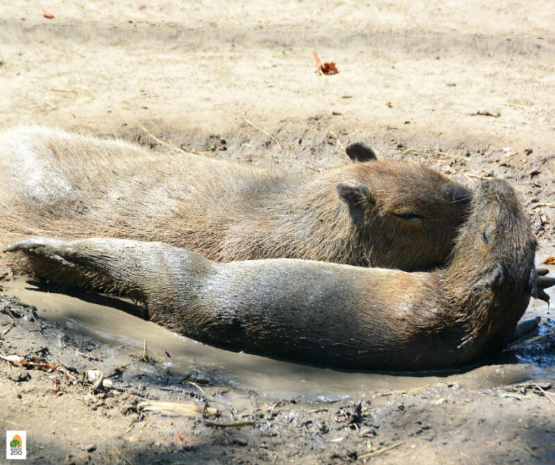 A Fővárosi Állatkert vízidisznói nagyon kedvelik a hűsítő időtöltést. Éppen ezért a Dél-Amerika kifutóban, ahol több más állatfajjal, tapírokkal és nagy marákkal élnek társbérletben, a medence mellett sárfürdőzési lehetőséget is biztosítanak nekik.