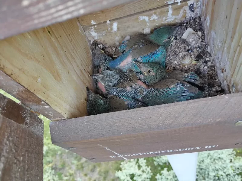 Népes szalakóta család cseperedett fel a Gyöngybagolyvédelmi Alapítvány által készített odúban!