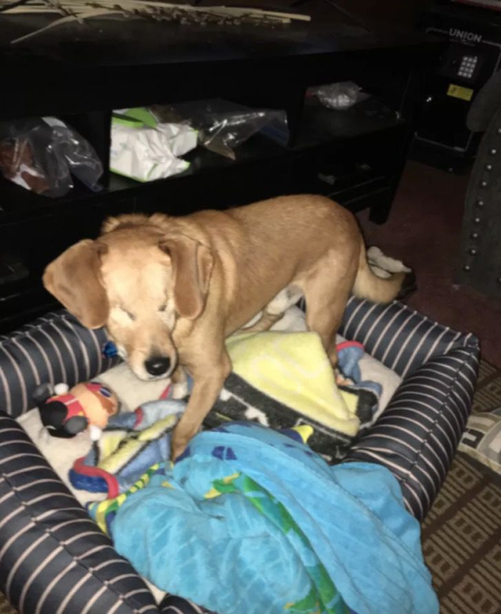 Mivel Rusty már idősebb kutya, szívesen üldögél gazdái közelében, és élvezi a simogatásukat, és az sem baj, hogy nem lát, hiszen szeretettel gondoskodnak róla élete hátralévő részében.