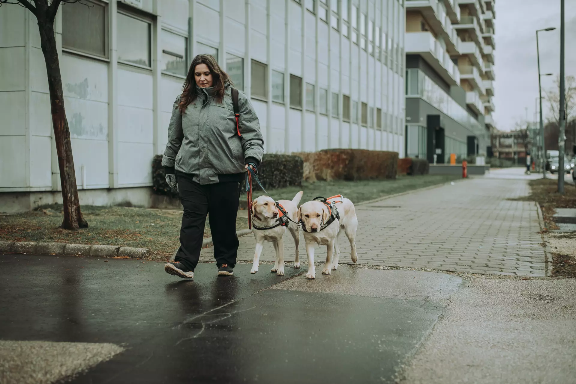 Vakvezető tanulóinkkal hosszú ideig gyakorolnak kiképzőink, hogy szinte minden helyzetre felkészüljenek. „Talán meglepő, de ezen az ónos esős napon el sem fáradtak a kutyák, minket, kiképzőket, sokkal jobban megviselt, hogy több órán át kint voltunk a metsző hidegben” – mondta Mária.