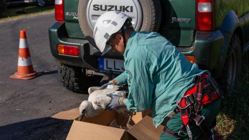 A mentést a Fertő-Hanság Nemzeti Park természetőre végezte, a kis gólya a kőszegi madárkórházba került.