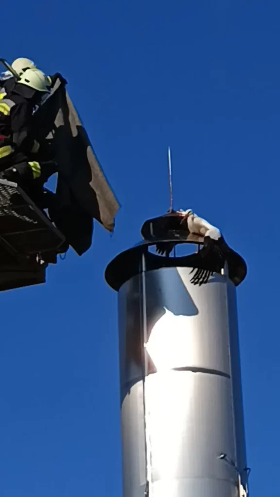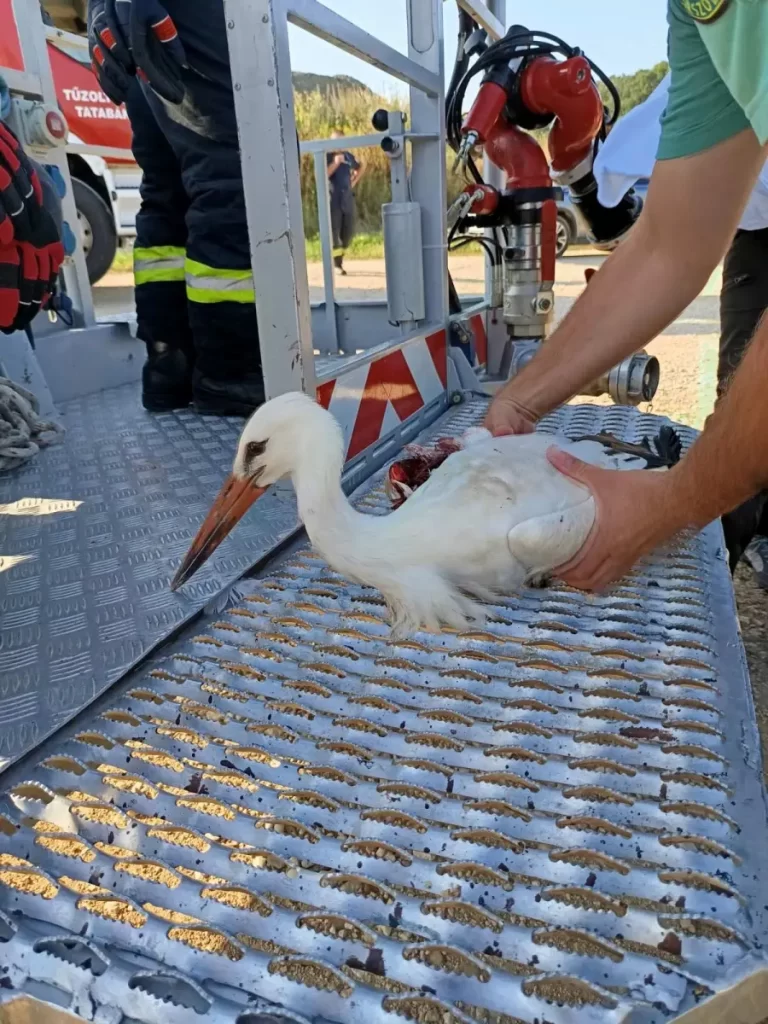 Villámhárítón fennakadt gólyán segítettek a tatabányai hivatásos tűzoltók.