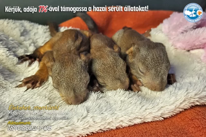„Mostanában nagy a hangoskodás a mentőállomáson. Kisebbnél kisebb madarak és emlősök érkeznek. Biztosan emlékeztek még a három kis mókuskára, akiknek még ki se nyílt a szemük.” – jegyezte meg közösségi posztjában a Madármentő Állomás Mályi – Bird Rescue.